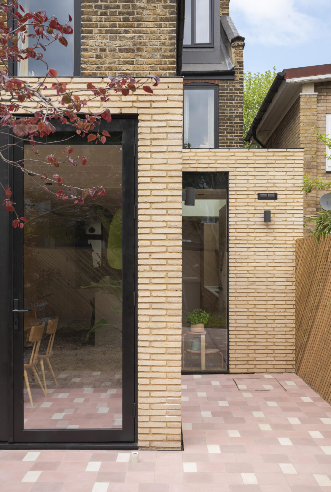Externally the rear extension is constructed with Vande Moortel buff bricks, similar in colour to traditional London bricks of the original home but distinctly different in proportion as they are significantly thinner and longer than a standard UK brick. The handmade bricks have been laid randomly to the exterior, adding a sympathetic but contemporary point of interest to the extension.