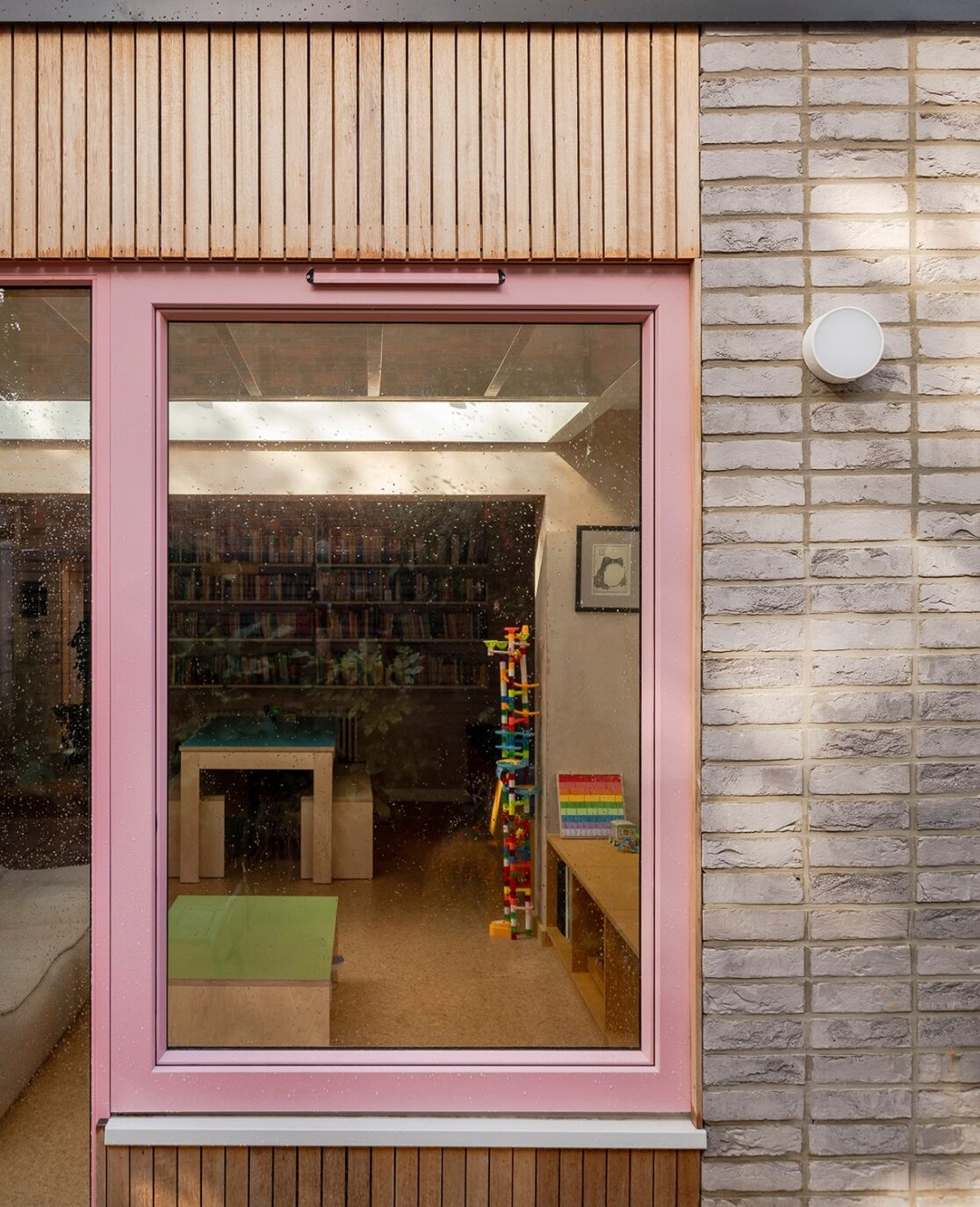 All the existing chunky Upvc window frames have been replaced throughout the house, introducing modern slim line framing which has given the illusion of enlarging all the windows without structurally altering the dimensions of the physical openings. The new windows are aluminum clad timber windows, with a clear lacquer internally and the external aluminum are finished in a striking pink adding an element of fun to the exterior design.