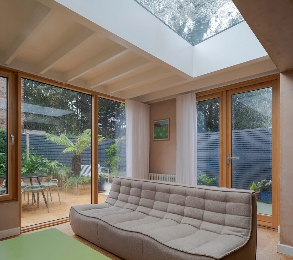 To create the much-needed additional bedroom, half of the side extension has been utilised creating a multi-functional garden room to be used as an additional bedroom or home working space. The front half has been kept as a bike store and shower room.
